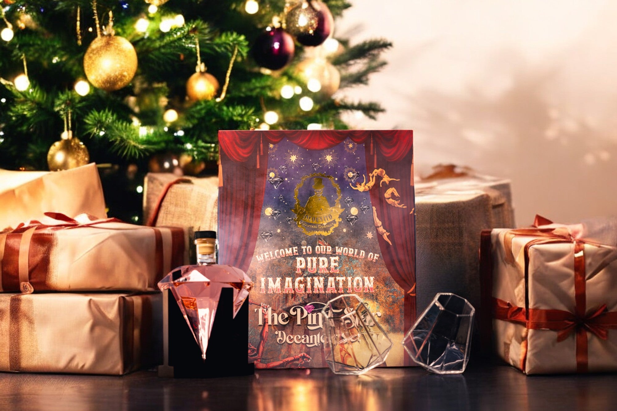A stunning diamond decanter set complete with stand and rocks glass and filled with 500ml of our award winning Strawberry & Raspberry Pink Gin. Each set comes complete with 2 stunning diamond shaped glasses and luxury gift box with ribbon tie.